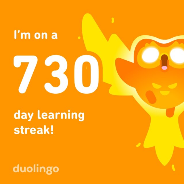 既に過ぎた話になりますが、語学学習用アプリ「Duolingo」で730日連続の継続学習を達成しましたので、記念に投稿します。それだけのことなんですが、きちんと勉強する習慣が根気よく続いていることは素直に喜んでおきたいというところです。