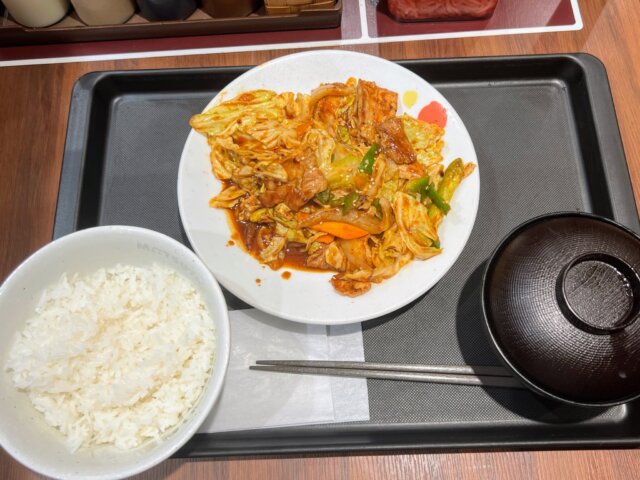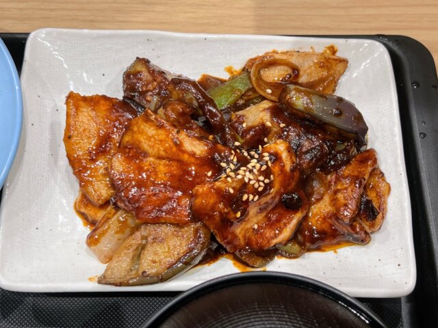 厚切り豚カルビと茄子の辛味噌炒め定食